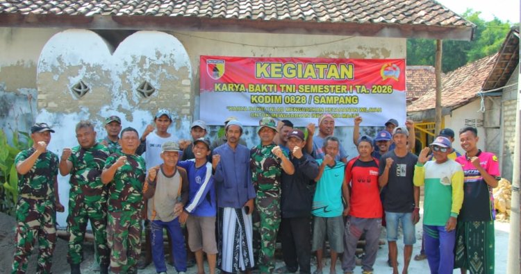 SAMPANG - Dalam upaya menciptakan lingkungan yang bersih, sehat, dan aman, Kodim 0828/Sampang menggelar kegiatan Karya Bhakti di Mushola At Taufiq, yang berlokasi di Desa Aeng Sareh, Kecamatan Sampang, Kabupaten Sampang.